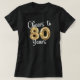 80th Birthday Cheers to 80 Years Gold Balloons T-Shirt. Celebrate an 80-year-old with this t-shirt or other apparel featuring the saying CHEERS TO 80 YEARS with faux metallic gold foil balloon numbers. ASSISTANCE: For help with design modification, transferring the design to another product or for coordinating items, contact the designer BEFORE ORDERING via the Zazzle Chat MESSAGE tab below or email makeitaboutyoustore@gmail.com.