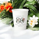 An elegant and simple tropical 80th birthday design that is sophisticated and classy, this paper party cup has palm fronds, hibiscus, fig blossoms, anthuriums, bird of paradise, and orchids adorn the number "80" with beauty and elegance for this special milestone birthday celebration. The text template can be personalized with the guest of honor's name.