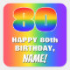 80th Birthday: Colorful, Fun Rainbow Pattern # 80 Square Sticker