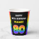 80th Birthday: Colorful Rainbow # 80, Custom Name Paper Cups