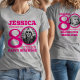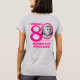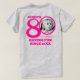 Happy 80th Birthday pink text, name and two photos t-shirt. Fun double sided 80th personalized photo t-shirt in bold pink text design. Personalize this birthday shirt with a photograph of the birthday girl in the middle of the number 0 on both the front and the back. Great idea for adding some fun to a milestone eightieth birthday party celebration. Other matching items and colors options are available. Exclusive design by Sarah Trett for www.mylittleeden.com