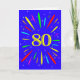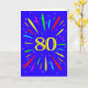 An explosive 80th birthday card! What a wonderful way to send birthday greetings. The number 80 in bright yellow with an explosion of bright colors and stars.