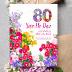Celebrate a milestone in full bloom with this vibrant 80th birthday Save the Date postcard, featuring a colorful floral-filled “80” and a bright garden border.