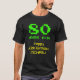 This nerdy and silly shirt design has the message "80 YEARS OLD!", the birthday greeting message "Happy 80th Birthday,", and a personalized name. The upper age digits and text have a nerdy, green, pixelated, 8-bit graphics style appearance inspired by that of classic video games and old-school computer games. The lower greeting message has a geeky, yellow, retro digital computing inspired look. Shirts like this might be worn by the guests at a birthday party being held to celebrate the 80th birthday of somebody who likes classic video gaming or retro computers. [~Z0000455]