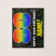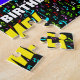 This vibrant and colorful birthday themed jigsaw puzzle design features a large number “80” with a multicolored rainbow spectrum inspired gradient pattern, along with the message “HAPPY 80th BIRTHDAY,”, and a customizable recipient name. The background has an upbeat pattern of music notes having various sizes and colors. A joyful, customizable birthday puzzle like this might be a fun way to send a birthday greeting message to somebody who is celebrating their eightieth birthday. These might be extra special for a music-themed birthday party. [~Z0000608]