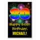 80th Birthday: Fun Fireworks Pattern & Rainbow 80 Card