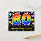 80th Birthday: Fun Hearts Pattern, Rainbow 80 Postcard