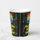This cheerful and colorful music-themed birthday paper cup design features a large number “80” with a rainbow spectrum gradient inspired pattern, along with the message “Happy 80th Birthday,”, and a personalized name. The background features a vibrant and colorful pattern having music notes and symbols of various sizes and colors. Vibrant, colorful paper cups like this might be fun to have at a birthday party being held to honor somebody’s eightieth birthday. [~Z0000541]