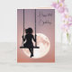 Silhouette girl on a swing with a full moon in the pink sky for 80th birthday.
