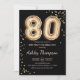 80th Birthday - Gold Balloons Black Invitation
