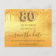 80th birthday gold glitter save the date card