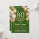 80th Birthday Green and Gold Glitter Balloons Invitation