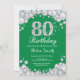 80th Birthday Green and Silver Diamond Invitation