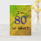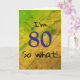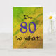 A great greeting card for someone celebrating 80th birthday. It comes with a funny quote I`m 80 so what, and is perfect for a person with a sense of humor.