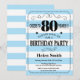 80th Birthday Invitation Blue and White Stripes