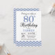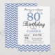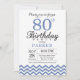80th Birthday Invitation with Blue Chevron. Black and White. Adult Birthday. Man or Women Bday Invite. For further customization, please click the "Customize it" button and use our design tool to modify this template.