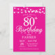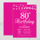80th Birthday Invitation with String Lights. Hot Pink Background. Women Female Lady Elegant Modern bday. 13th 15th 16th 18th 20th 21st 30th 40th 50th 60th 70th 80th 90th 100th, Any age. For further customization, please click the "Customize it" button and use our design tool to modify this template.