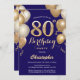 80th Birthday Navy Blue and Gold Balloons Confetti Invitation