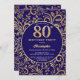 80th Birthday Navy Blue and Gold Floral Pattern Invitation