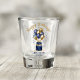 This modern 80th birthday party shot glass featuring a 2-layer navy blue and gold cake with navy blue and gold balloons, the number 80 in gold and the guest of honor's name and the party date would be perfect for celebrating your husband, brother, dad, uncle, grandfather, great grandfather, friend. They are traditional and classic while being fresh, modern and contemporary. They make awesome favors!