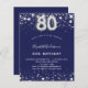 80th birthday navy blue silver stars invitation