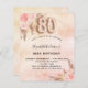 A rose gold, blush pink gradient background. Decorated with rose gold and pink florals, roses, pampas grass. Personalize and add a name and party details. Number 80 is written with a balloon style font.