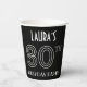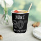 This stylish 1920s-1930s era inspired art deco style birthday themed paper cup design has a personalized name, plus the message “80TH BIRTHDAY PARTY!”. The number “80TH” has a fancy geometric lined look. Luxurious paper cups like this might be fun to use at a birthday party in honor of somebody’s eightieth birthday, or some other 80th event. [~Z0000658]