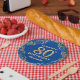 80th Birthday Party Blue and Gold Glitter Frame Paper Plates