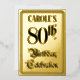 The front of this fancy eightieth birthday celebration foil invitation/announcement card design features the message “80th Birthday Celebration” in elaborate script-style text. It also has a customizable name. The back features personalized details about the event, such as the date, time, venue/location, and any other relevant information. Elegant, elaborate, editable invitations like these might be used to invite guests to a birthday party being held in celebration of somebody’s 80th birthday. [~Z0000596]
