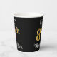 This luxurious and ornate birthday paper cup design features a personalized name and the message “80th Birthday Party”. The large number “80th” has an imitation/faux gold-inspired coloring pattern, the words “Birthday Party” are in elegant script-style text, and the background is colored black by default (although it can be customized). Opulent, elegant paper cups like this might be used at a birthday celebration/party being held in celebration of somebody’s eightieth birthday. [~Z0000567]