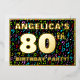 The front of this joyful eightieth birthday celebration/party foil invitation card design features a personalized name, a large number “80th”, the message “BIRTHDAY PARTY!”, and a border. The background of the front features an upbeat, multicolored pattern of musical symbols. The back features personalized details about the event, such as the date, time, venue, and any other information that may be important. Customizable invitations like these might be a fun way to invite attendees to a birthday party/gathering being held in celebration of somebody’s 80th birthday. These might be extra special if that person is a composer, a songwriter, a musician, a singer, or a lover of music. [~Z0000601]