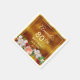 A napkin for an elegant 80th birthday party. A dark faux gold colored background and a faux gold frame. A floral border with a pink rose, white cherry flower blossom and som golden dahlias. Templates for a name, the age 80 and the date of the party or the birth of date. The name is written with a trendy hand-lettered style script. Golden letters.