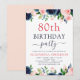 80th Birthday Party Navy Blue Blush Pink Floral Invitation