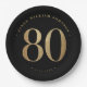 80th birthday party paper plates in black and gold