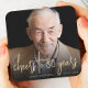 80th Birthday Party Photo Cheers Gold Script Square Paper Coaster