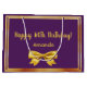Two elegant faux gold frames and a chic dark purple background. With the text: Happy 80th Birthday! Template for her name, golden letters. Decorated with an elegant golden colored bow.