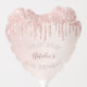 Girly and trendy balloons for a 80th birthday party. A feminine light pink, rose gold background decorated with faux rose gold glitter drips. Templates for a date and name/age 80. Curved text and dark rose gold colored letters. The name is written with a modern hand lettered style script. Perfect as party decorations and the table setting.