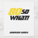 This modern and elegant wine label is a great gift idea for a person who loves wine and is celebrating the 80th birthday. A motivational and funny text 80 So what! is great for a person with a sense of humor. Birthday present for a man. The text is in yellow and black color. You can change the age number and the text.