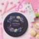 Moody and mysterious purple roses and peonies set the tone for this elegant 80th birthday party paper plate. White and blue flowers add a pop of color to the dark watercolor wreath. Happy 80th Birthday and the birthday celebrant's name is in the center. The bright white script gives it an elegant and traditional vibe. Formal but with a modern twist for the woman who has always had a sense of style and loves flowers. This item is part of the Moody Purple Flower collection. It contains the items you need to create a unique invitation suite, as well as personalized welcome signs, party supplies and decorations. Plan your party theme in minutes and have fun creating the perfect stationery and decorations.