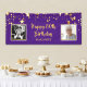80th Birthday Photo Purple Gold Stars Personalized Banner