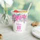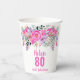 80th birthday pink floral Paper Cups. Personalize name and age.