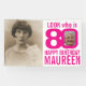 Look who is 80 custom two photos now and then and name 80th birthday party banner. Fun personalized photo birthday graphic design in hot pink on white. Personalize with a photograph of the birthday girl in the middle of the number 0. Great idea for adding some fun to a eightieth milestone birthday party or event. Other matching items and colors are available. Exclusive design by Sarah Trett for www.mylittleeden.com