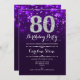 80th Birthday - Purple Silver Invitation