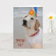 Labrador Retriever with birthday party hat on the beach for 80th Birthday.