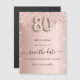A girly and trendy Save the Date card for a 80th birthday party. Rose gold gradient background decorated with rose gold and faux silver glitter drips and dust. Personalize and add a date and name/text. The text: Save the Date is written with a large trendy hand lettered style script with swashes. Number 80 with a balloon style font.