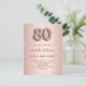 A modern, stylish and glamorous invitation for a 80th birthday party. A faux rose gold metallic looking background with pink diamonds. The name is written with a modern dark rose gold colored hand lettered style script. Personalize and add your party details. Number 80 is written with a balloon style font, script.