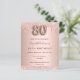 80th birthday rose gold invitation