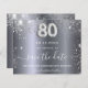 An elegant Save the Date card for a 80th birthday party. A modern faux silver looking background, decorated with faux glitter dust. Personalize and add a date and name/age. The text: Save the Date is written with a large trendy hand lettered style script. Number 80 with a balloon style font.