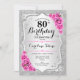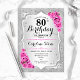 80th Birthday - Silver Stripes Pink Roses Invitation
