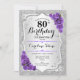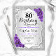 80th Birthday - Silver Stripes Purple Roses Invitation